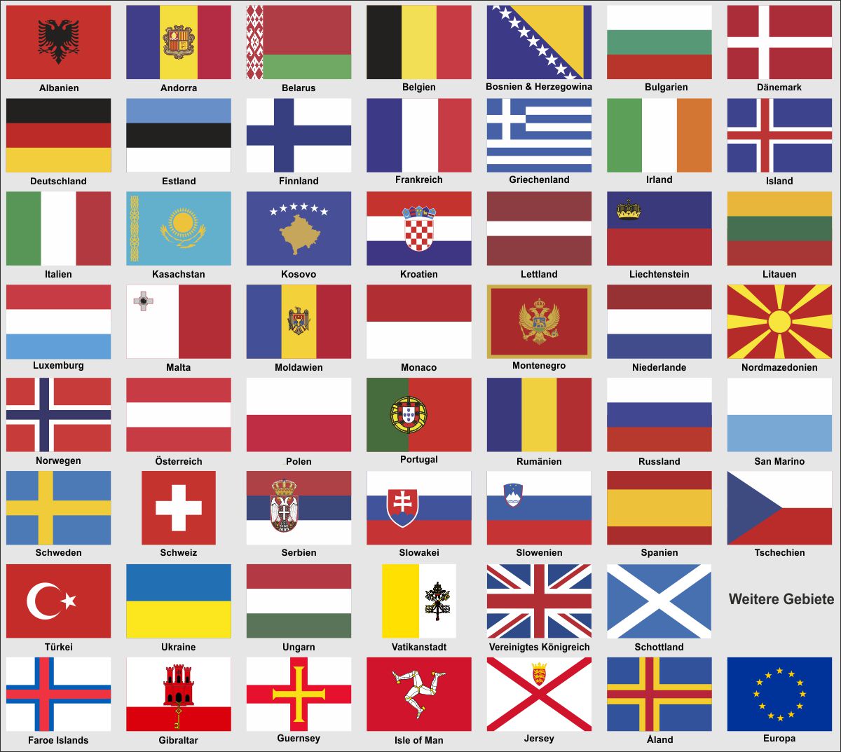Aufkleber Set Europa Flaggen Autoaufkleber 55 Stück