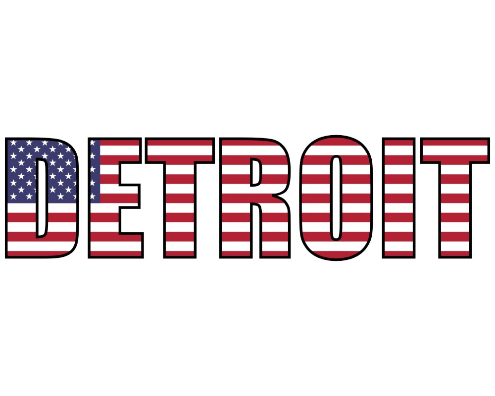 Detroit Schriftzug Stadtname als Aufkleber für Auto, Motorrad, Wohnmobil oder Scheibe. Der konturgeschnittenes Aufkleber ist in vielen Größen erhältlich. Das Design ist in den amerikanischen Landesfarben gehalten.