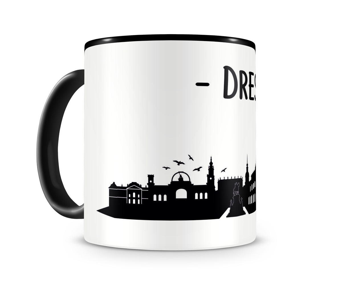 Die Skyline von Dresden aufgedruckt auf einer Tasse. Sie ist für die Spülmaschine geeignet. Außerdem ist diese Tasse ein tolles Geschenk für jeden richtigen Fan der Stadt.