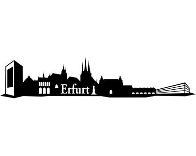 Skyline Aufkleber der Stadt Erfurt. Erfurt ist die Landeshauptstadt und größte Stadt des Freistaats Thüringen. Viele Sehenswürdigkeiten wurden für die Erstellung dieser Skylinecollage herangezogen. Es wurden unter anderem die Motive Martin Luther Denkmal, Bundesarbeitsgericht sowie Dom und Severikirche verwendet. Bestens geeignet als Autoaufkleber, Motorradaufkleber oder XXL Wohnmobilaufkleber.