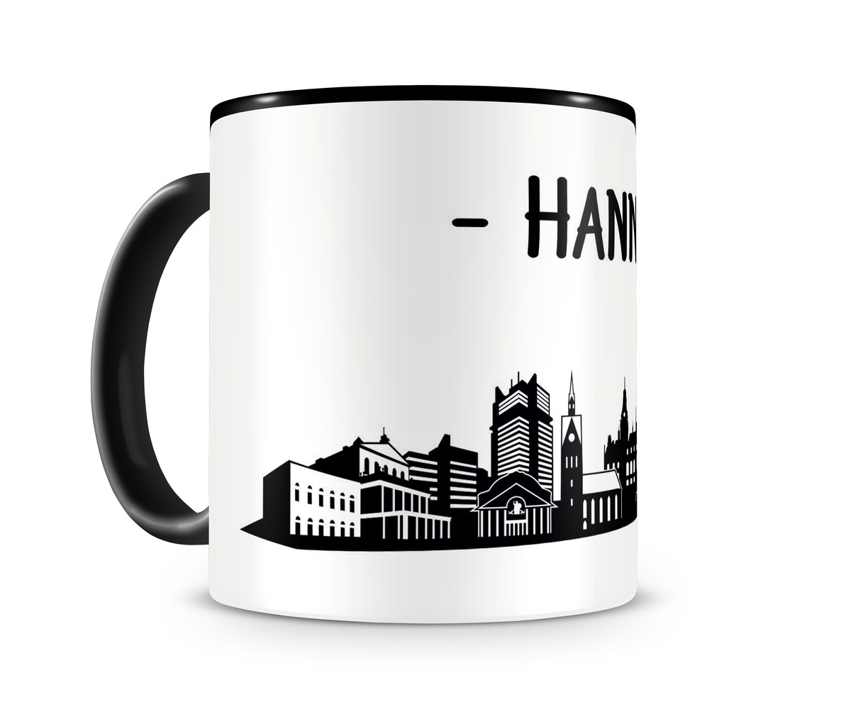 Die Stadt Hannover dargestellt als City Skyline. Die Tasse wird von uns, in Deutschland, bedruckt. Sie ist etwa 9 cm hoch und hat einen Durchmesser von ca. 8 cm, außerdem ist sie für die Spülmaschine geeignet.