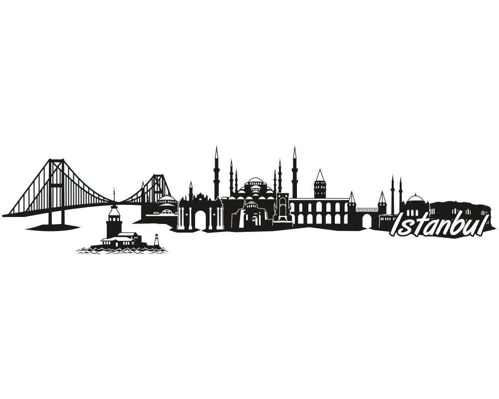 Die Skyline von Istanbul bieten wir hier als Aufkleber, der sowohl innen als auch außen zu verwenden ist an. Die zusehenden Gebäude sind die bekanntesten Sehenswürdigkeiten und schönsten Bauwerke. Unter anderem sind das: Bosporus-Brücke, Leanderturm, Hagia Sophia, Dolmabahçe-Palast, Blaue Moschee oder auch Sultan-Ahmed-Moschee, Chora-Kirche, das Denkmal der Republik auf dem Taksim Platz, Valens-Aquädukt, Galataturm, Topkapi-Palast, Ortaköy-Moschee, Beylerbeyi-Palast.