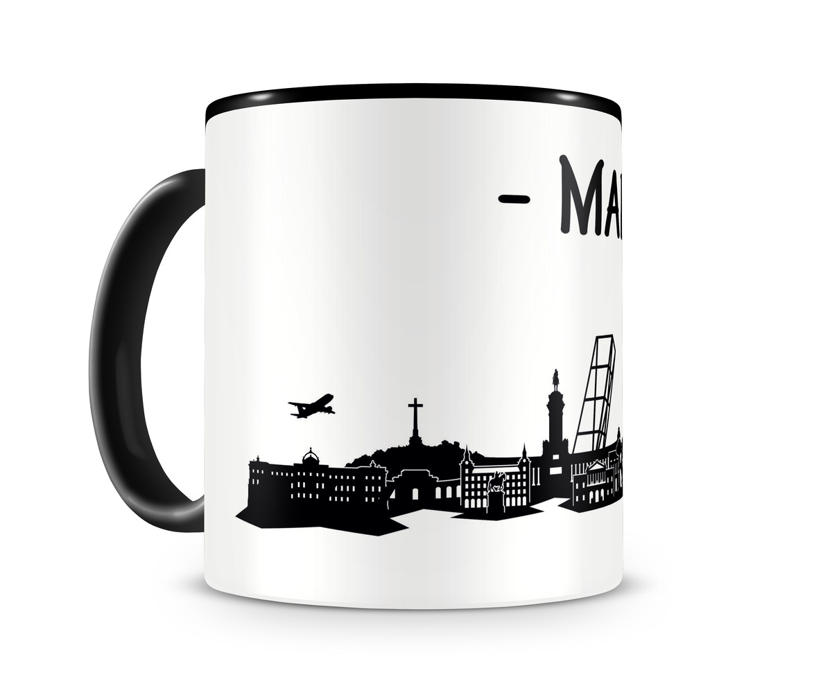 Eine Tasse bedruckt mit der Skyline von Madrid