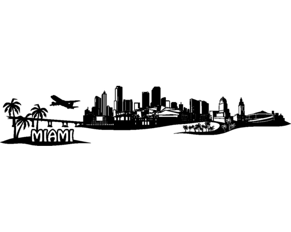 Skyline Miami Wandtattoo mit vielen bekannten Motiven der Stadt wie etwa der Freedom Tower, das Four Seasons Hotel, oder Dade County Courthouse um nur einige zu nennen.