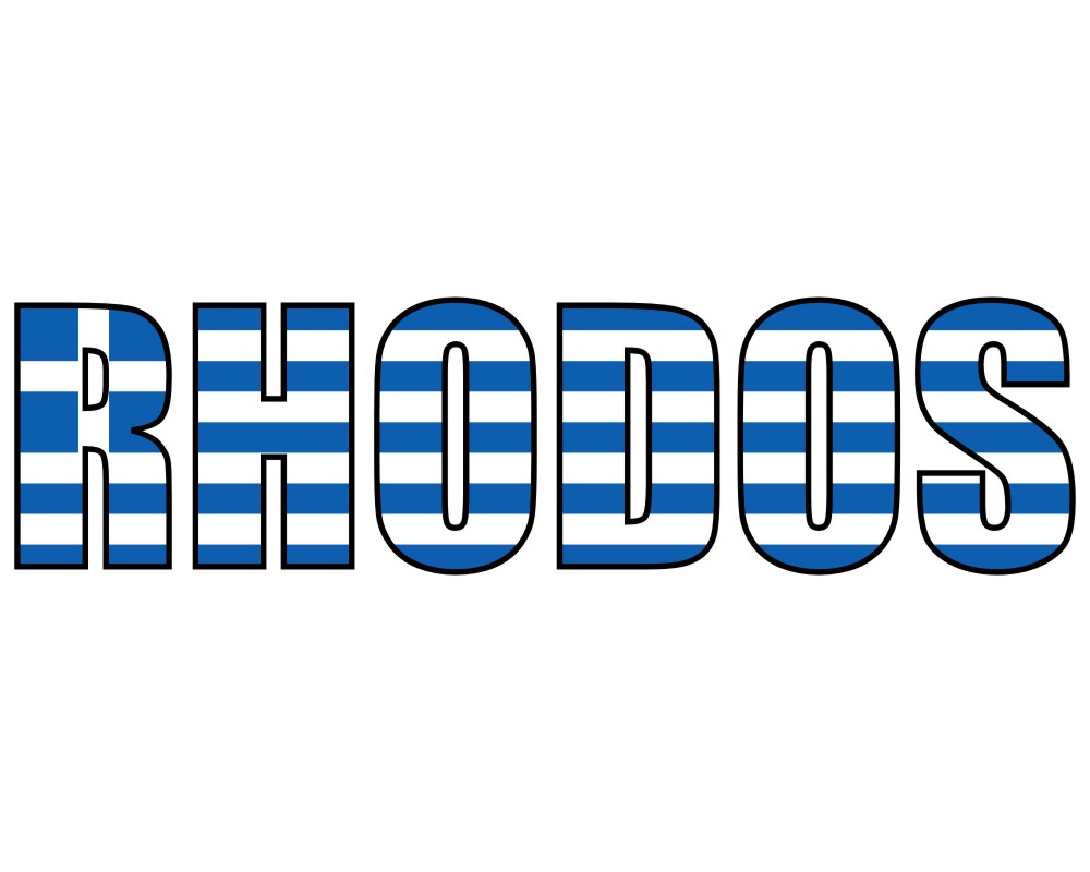 Die griechische Insel Rhodos als Schriftzugaufkleber in den Nationalfarben des Landes. Der Digitaldruck Aufkleber mit weißer Umrandung als Autoaufkleber, Scheibenaufkleber oder Motorradaufkleber. In vielen Größen erhältlich.