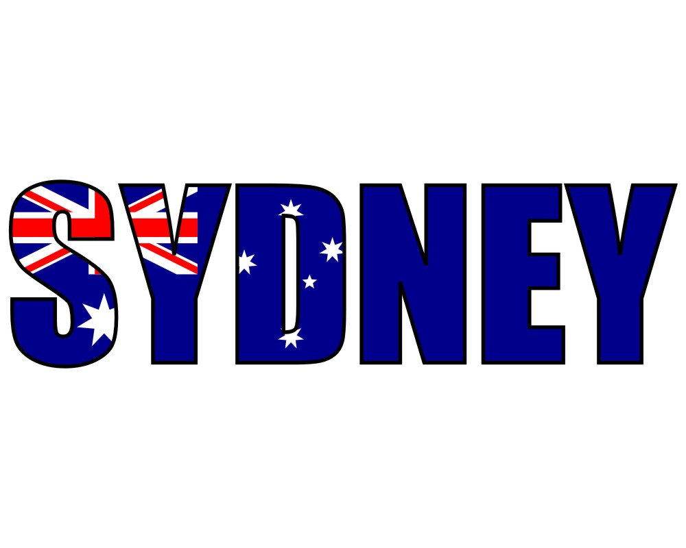 Stadtname Sydney als Aufkleber in den Landesfarben rot-weiß-blau. Konturgeschnittener Digitaldruck Aufkleber mit weißer Umrandung, dadurch gute Erkennbarkeit auf allen farbigen Untergründen. UV beständig und in verschiedenen Größen erhältlich. Für Sydney Fans als Autoaufkleber, Heckscheibenaufkleber oder Wohnmobilaufkleber.