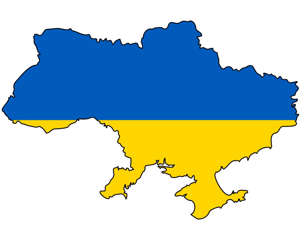 Ukraine Aufkleber in den Nationalfarben. Konturgeschnittener Umriss des Landes für Auto, Wohnmobil oder Motorrad.