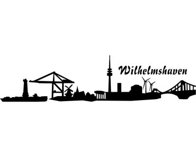 Schön arrangiert mit dem Schriftzug 'Wilhelmshaven' entstand so eine Skyline Collage mit der sie ihre Verbundenheit und Liebe zur Stadt kundgeben können. Vielleicht als Autoaufkleber oder Wohnmobilaufkleber?